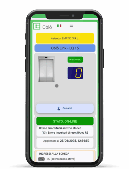 Oblò link è già integrato nei quadri Ematic, con SIM attiva e accesso immediato alla piattaforma.